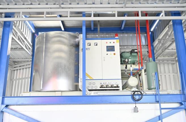 快速制冰:采用20噸高效片冰機,能夠在短時間內(nèi)快速制冰。片冰因其超大的接觸面積,能夠迅速吸收魚肉中的熱量,實現(xiàn)快速預(yù)冷。