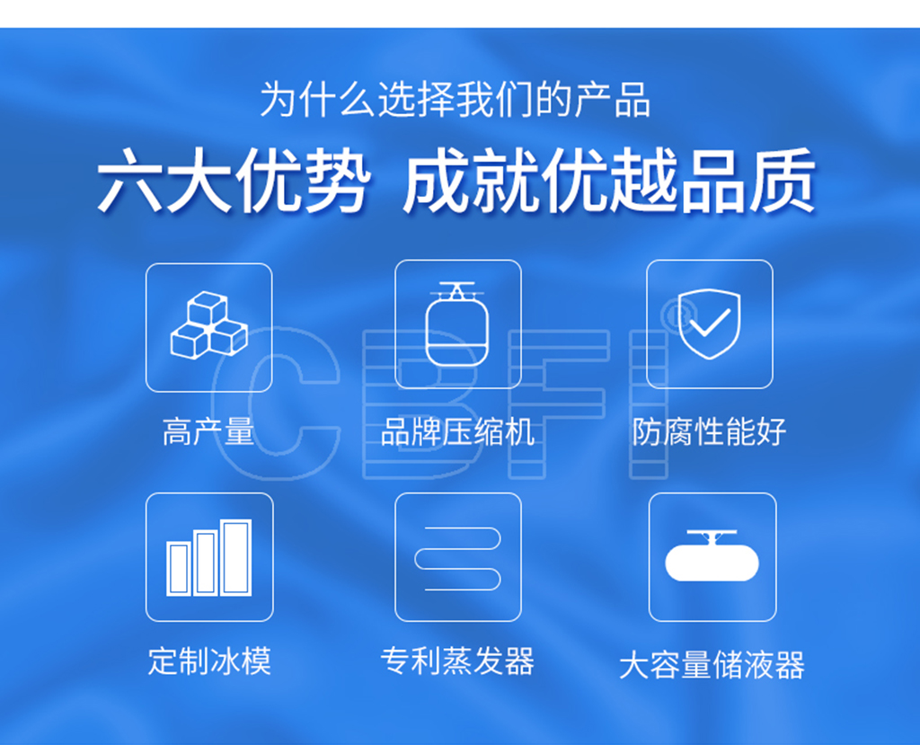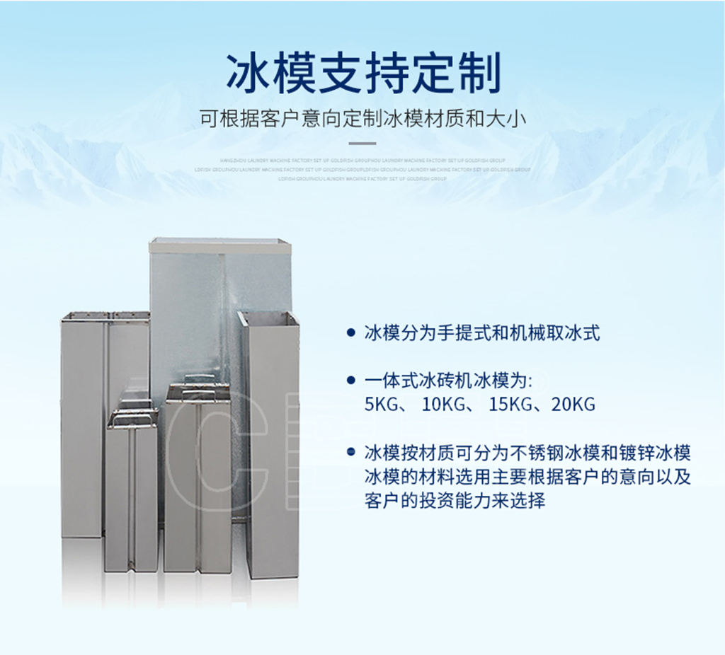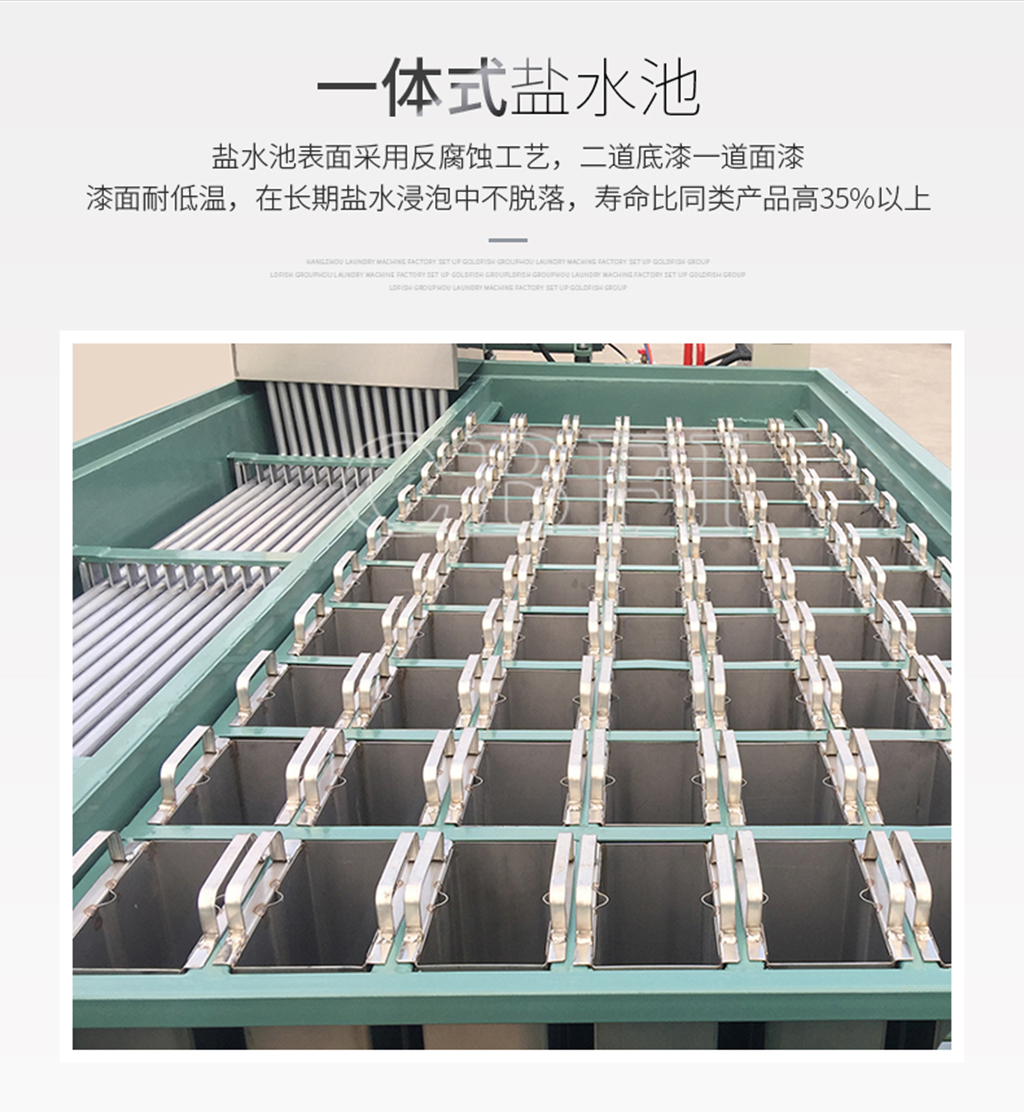 冰磚機(jī)是制冰機(jī)中的一種,所制出的冰塊是冰類產(chǎn)品中外形尺寸最大,與外界的接觸面積小的,不容易融化。冰磚機(jī)應(yīng)用領(lǐng)域:港口碼頭的冰工廠,食品加工,水產(chǎn)品保鮮、冷卻、水產(chǎn)、食品保鮮、冰雕觀賞使用,食用冰領(lǐng)域等,大小尺寸可根據(jù)需求訂制,可根據(jù)不同要求粉碎成各種形式的冰塊。