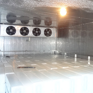 對于集中販?zhǔn)郾鶋K和用冰周期不定以及擁有大型噸位制冰機(jī)的用戶,配置低溫儲冰庫是必須的。制冰機(jī)提前工作,將做好的冰集中儲存在冷庫中,可以提高經(jīng)濟(jì)效益。低溫儲冰庫儲存溫度要求在-10℃以下。