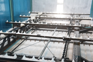 耙式自動儲冰庫的上、下、四周及庫門都有保溫層,另外附帶一個(gè)制冷機(jī)組,將冰庫的內(nèi)溫度降低并保持在-10℃,并且在庫內(nèi)有機(jī)械設(shè)備,可將儲存的冰耙平、自動將冰輸送到出冰口。耙式自動儲冰庫一般為中型儲冰庫,儲冰量50~200噸,可根據(jù)客戶的實(shí)際情況定做。