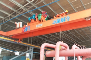 行車裝置對(duì)于冰磚機(jī)來說是一個(gè)必不可少的輔助設(shè)備。當(dāng)機(jī)器日產(chǎn)冰量越大的時(shí)候就越要依賴行車(一般3-100噸的冰磚機(jī)就需要行車了,1-2噸冰磚機(jī)使用的冰模大概有2.5kg、5kg、10kg等這種情況可用叉車或者其他的調(diào)取冰模的裝置,3-100噸的冰??蛇x性多,這個(gè)時(shí)候叉車滿足不了,所以行車是必不可少的輔助設(shè)備)。