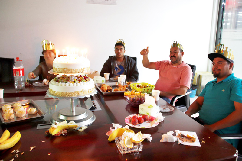21日下午6點(diǎn)左右,會(huì)議室早已放置好各種美味的食物,隨后壽星們陸續(xù)進(jìn)場。下午6點(diǎn)10分,生日會(huì)正式開始,活動(dòng)由人事曹小姐主持,她的幽默詼諧,讓會(huì)場掌聲不斷。接著是大家的自我介紹環(huán)節(jié),大家依次介紹了自己的性格、愛好和生日感言。