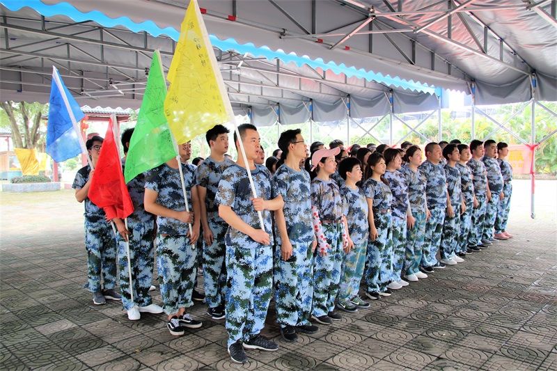 開始進(jìn)行的是軍姿隊(duì)列訓(xùn)練,嚴(yán)格紀(jì)律,統(tǒng)一行動。之后全體隊(duì)員分成了四個戰(zhàn)隊(duì),分別是沖鋒戰(zhàn)隊(duì)、猛虎戰(zhàn)隊(duì)、飛龍戰(zhàn)隊(duì)、海豚戰(zhàn)隊(duì),完成授旗儀式,確定了各戰(zhàn)隊(duì)口號與戰(zhàn)歌。