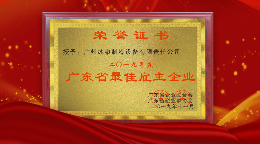 廣州冰泉制冷設(shè)備有限責(zé)任公司于近日榮獲2019年度“廣東省最佳雇主企業(yè)”稱號。