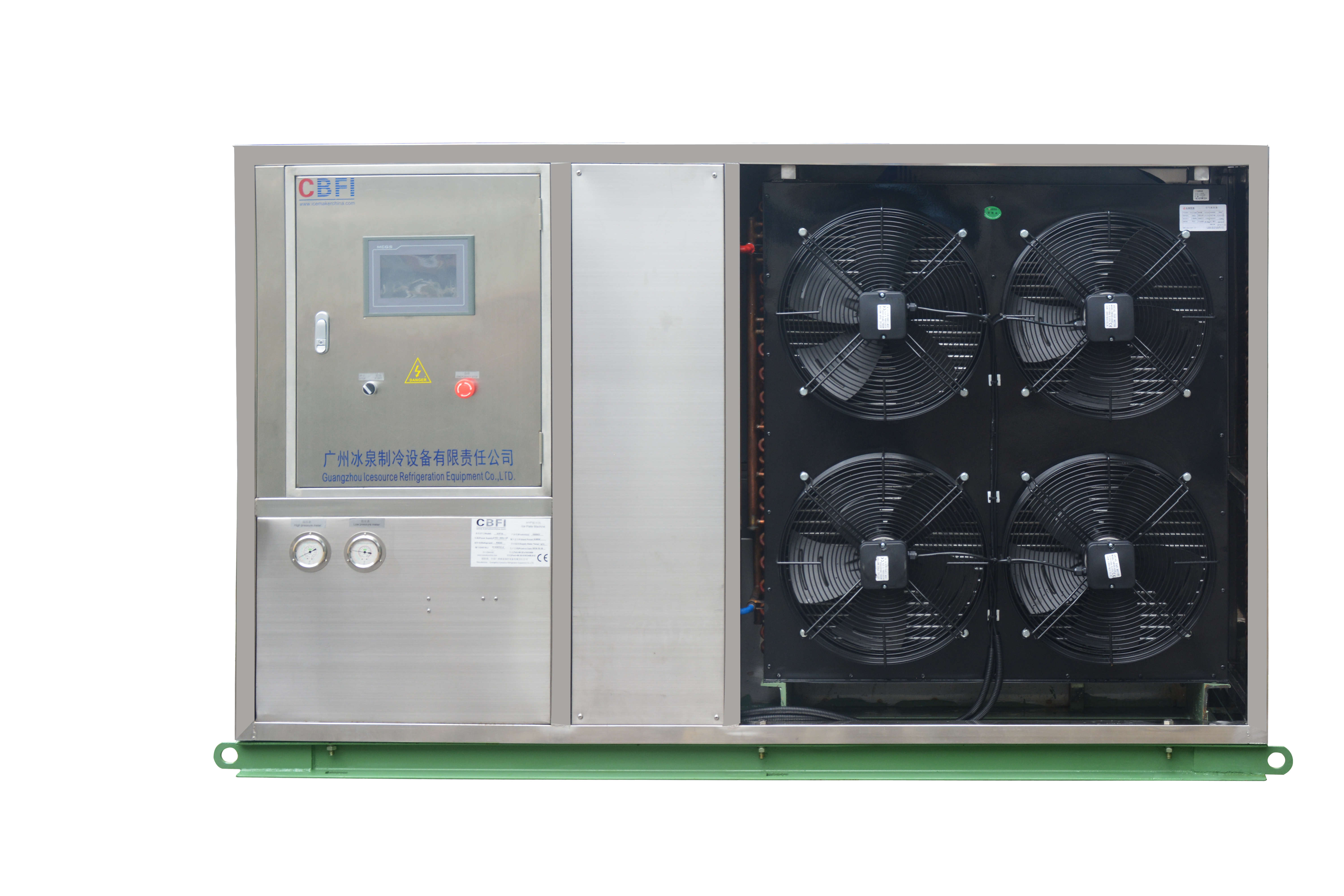 直冷冰磚機選用職業(yè)搶先技術,經過制冷劑與水直接熱交換的制冰原理,水槽內的水在經過一段時間后,到后來全部凍結成冰,此刻控制系統(tǒng)主動轉為脫冰方式,選用熱氟脫冰,脫冰速度快。鋁合食品需求,冰塊可直接食用。無需鹽水作為中間冷卻介質,制冰過程無污染,此外,獨特的模塊化設計使其占地面積遠遠小于傳統(tǒng)鹽水式塊冰機,節(jié)約人力和電力。